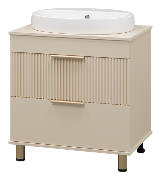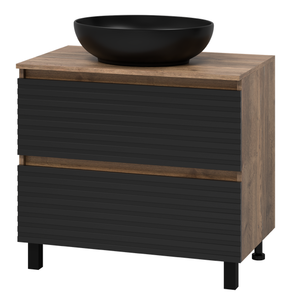 Накладная раковина добавляет ~10–15 см высоты. Чтобы умываться было удобно, тумба должна быть ниже — обычно 70–75 см вместо стандартных 85.