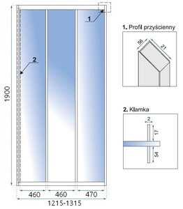 Душевая дверь Rea Alex раздвижная с тремя секциями предназначена для установки в нишу между двумя стенками. Регулируемый профиль дает возможность подогнать ширину на месте установки или нивелировать неровность стены. Дверь изготовлена из тонкого алюминиевого профиля с хромированным покрытием и прозрачного закаленного стекла с покрытием EasyClean.