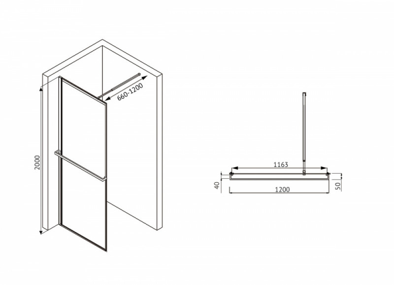 Душевая перегородка ABBER Immer Offen AG60120B8 120 см прозрачное стекло черный профиль