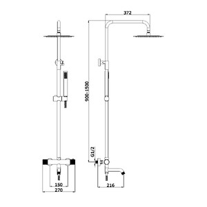 - Душевая система с тропическим душем, однорычажный термостатический смеситель с коротким изливом.