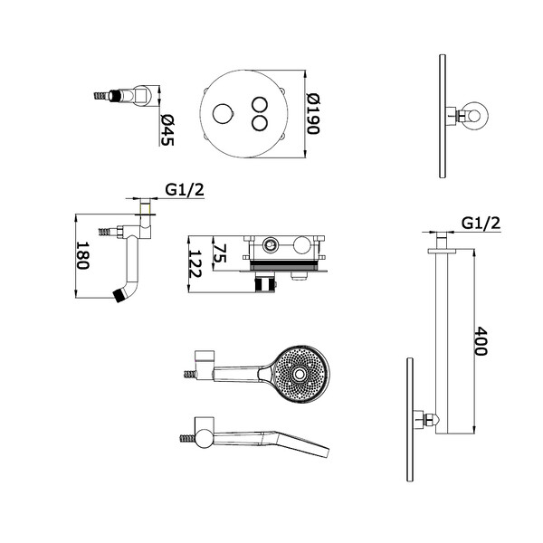 - Держатель верхнего душа.