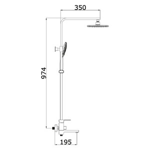 - Душевая система с тропическим душем, однорычажный смеситель с поворотным коротким изливом.