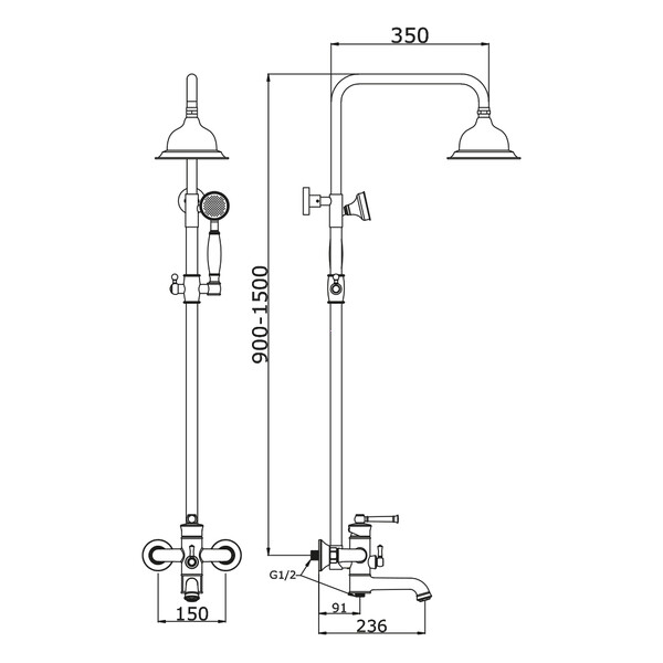 - Душевая система с тропическим душем, однорычажный смеситель с поворотным коротким изливом.