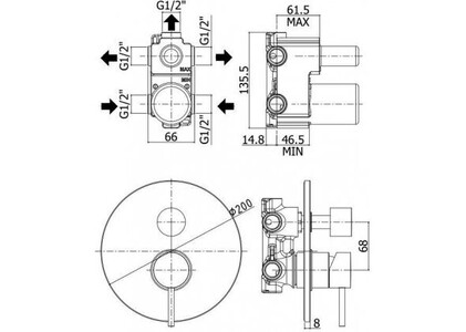 Встроенный смеситель с переключателем на 3 потребителя LIG019CR
