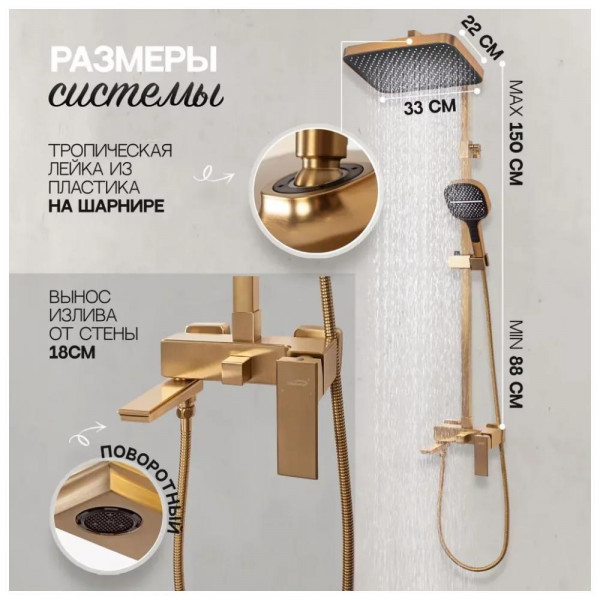 Душевая система Hansberge H5070MG Золото матовое