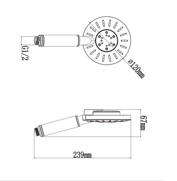 - верхний душ (WGNEVADABL), размер: ø22,5 см, отдаленность от стены: 43 см