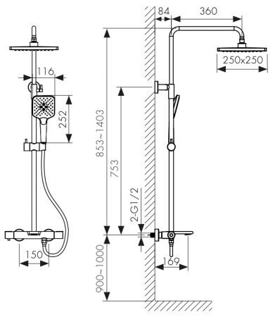 Душевая система KAISER Serio с термостатом, воронёная сталь