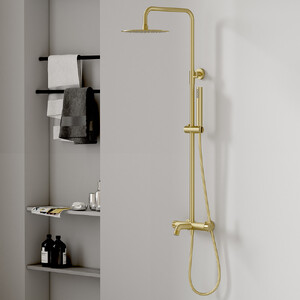 Душевая система VIEIR Gold Brushed V403562S изготовлена из латуни. Модель представлена в цвете матовое золото.