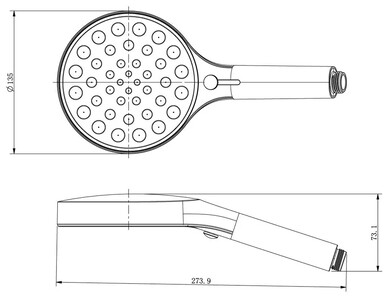 - Ширина верхнего душа: 30 см