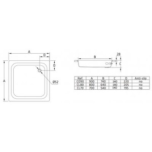 Душевой поддон BLB Universal 80x80x14.5 с гладким дном. Диаметр слива-52 мм.