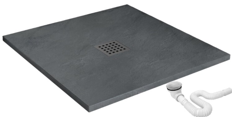 Душевой поддон Rea Grey Rock квадратный из искусственного камня, в комплекте с сифоном. Поверхность поддона имитирует природный камень по цвету и текстуре, материал устойчив к механическим повреждениям и прост в уходе.