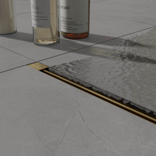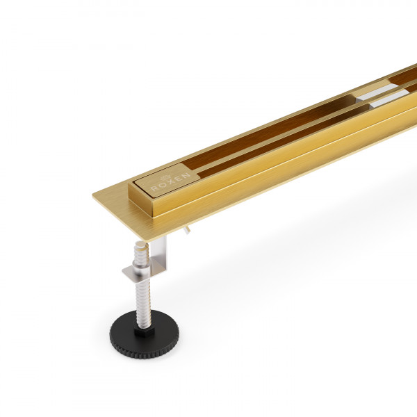 Душевой трап линейный Roxen Slim Gold - это стильное, современное решение для организации душевой зоны. Узкая видимая часть душевого лотка не бросается в глаза, делает сливную систему в полу практически незаметной, подойдет к любому интерьеру. Трап покрыт устойчивым к химическим и механическим воздействиям покрытием, которое надежно защищает изделие от коррозии и царапин. Корпус и решетка душевого лотка изготовлены из нержавеющей стали, сифон - пластиковый, обладает высоким уровнем прочности.