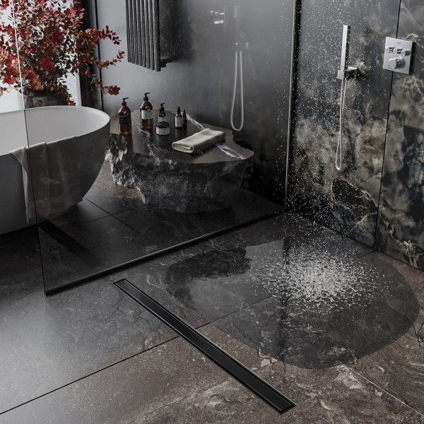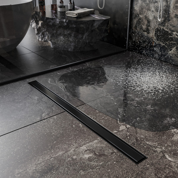 Душевой трап (линейный) Roxen Supra Black двусторонний под плитку - это практичное, стильное, современное решение для организации душевой зоны. Душевой лоток выполнен в насыщенном черном матовом цвете, покрыт дополнительным устойчивым к химическим и механическим воздействиям покрытием, которое надежно защищает изделие от коррозии и царапин. Корпус и решетка изготовлены из нержавеющей стали, сифон - пластиковый, обладает высоким уровнем прочности. Оборачиваемая декоративная решетка позволяет легко изменить дизайн душевой зоны. Одна сторона решетки предназначена под укладку плитки и делает сливное устройство практически незаметным, а вторая - из нержавеющей стали с черным покрытием с повышенной устойчивостью к коррозии и царапинам.