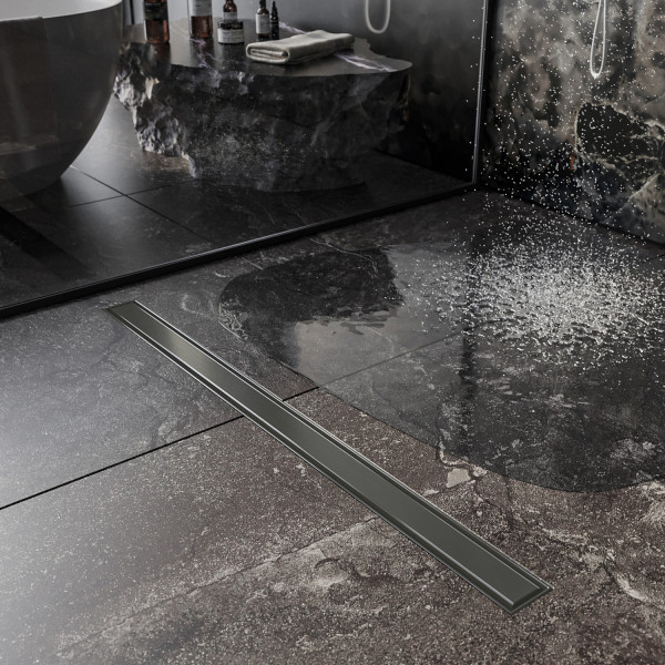 Душевой трап линейный (лоток) Roxen Supra Gun Metal двусторонний под плитку - это практичное, стильное, современное решение для организации душевой зоны. Душевой лоток выполнен в цвете "оружейная сталь", покрыт дополнительным устойчивым к химическим и механическим воздействиям покрытием, которое надежно защищает изделие от коррозии и царапин. Корпус и решетка трапа изготовлены из нержавеющей стали, сифон - пластиковый, обладает высоким уровнем прочности. Оборачиваемая декоративная решетка позволяет легко изменить дизайн душевой зоны. Одна сторона решетки предназначена под укладку плитки и делает сливное устройство практически незаметным, а вторая - из нержавеющей стали с покрытием с повышенной устойчивостью к коррозии и царапинам.