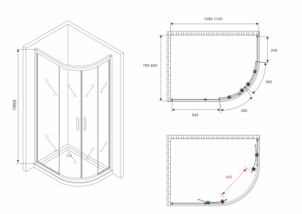 Душевой уголок ABBER Schwarzer Diamant AG01118 110х80 хромированный профиль прозрачное стекло