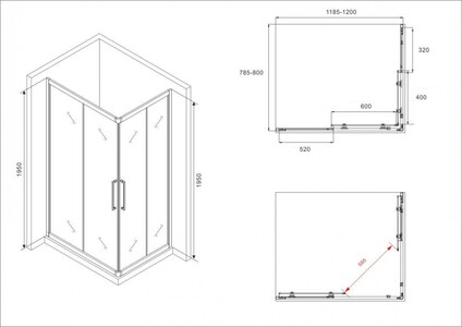 Душевой уголок ABBER Schwarzer Diamant AG02128MH 120х80 хромированный профиль матовое стекло