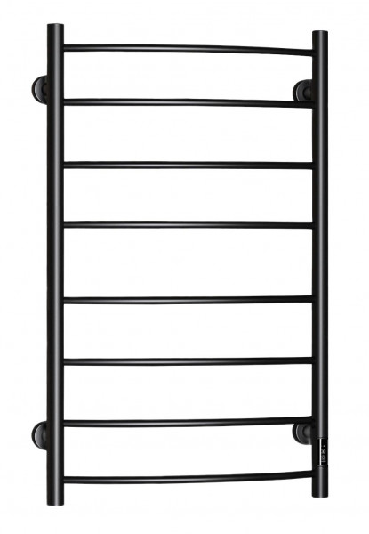 Полотенцесушитель Roxen Santi 11030-5385B электрический - модель на 8 перекладин дугообразной формы в черном матовом цвете. Изготовлен из высококачественной углеродистой стали толщиной 2 мм, которая обладает высокой прочностью и устойчивостью к износу. Углеродистая сталь способна выдерживать высокие температурные нагрузки, именно это свойство позволяет проводить покраску изделия при максимальной температуре, что дает наилучшее запекание краски и делает покрытие максимально плотным, крепким и устойчивым. Специальное защитное покрытие не оставляет отпечатков пальцев на поверхности и надежно защищает изделие от воздействия влаги и механических повреждений. В качестве нагревательного элемента используется нагревательный кабель сухого типа, который при включении быстро и равномерно прогревает всю поверхность изделия и отлично держит температуру. Подключение при помощи кабель-вилки, либо возможен вариант скрытого электрического соединения. Каждый полотенцесушитель проходит лазерную обработку швов, что дает увеличенный гарантийный срок до 10 лет.