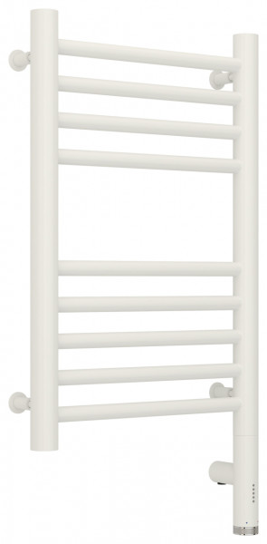 КОМФОРТНОЕ УПРАВЛЕНИЕ. Управление происходит с помощью эстетичного поворотно-нажимного элемента – он позволяет регулировать температуру в диапазоне от 40 до 60°С, выставлять таймер отключения прибора и переводить полотенцесушитель в режим экстра сушки.