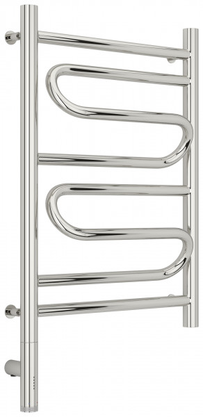 КОМФОРТНОЕ УПРАВЛЕНИЕ. Управление происходит с помощью эстетичного поворотно-нажимного элемента – он позволяет регулировать температуру в диапазоне от 40 до 60°С, выставлять таймер отключения прибора и переводить полотенцесушитель в режим экстра сушки.