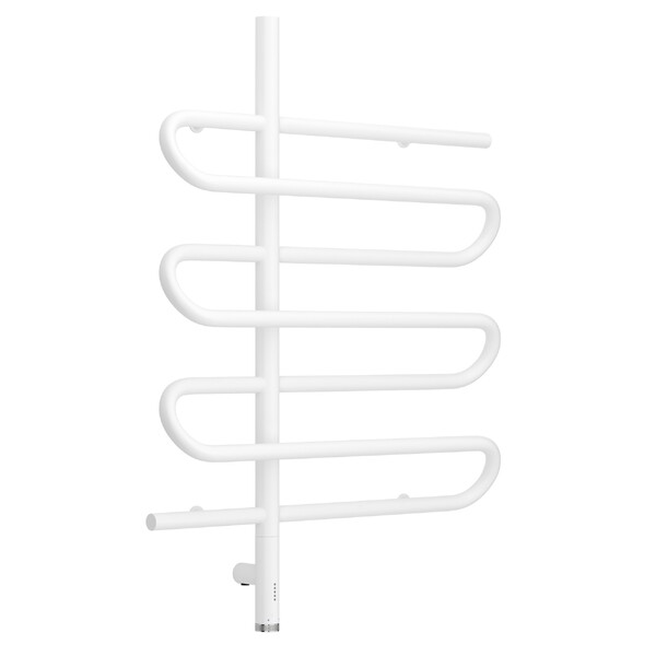 КОМФОРТНОЕ УПРАВЛЕНИЕ. Управление происходит с помощью эстетичного поворотно-нажимного элемента – он позволяет регулировать температуру в диапазоне от 40 до 60°С, выставлять таймер отключения прибора и переводить полотенцесушитель в режим экстра сушки.