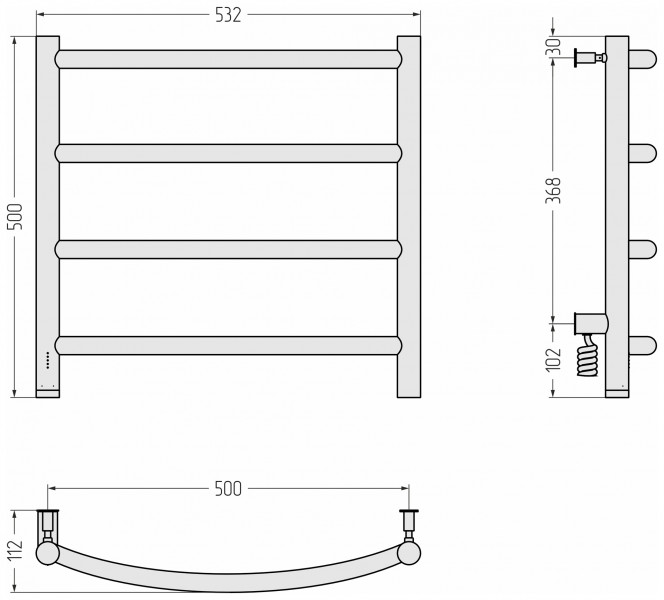 КОМФОРТНОЕ УПРАВЛЕНИЕ. Управление происходит с помощью эстетичного поворотно-нажимного элемента – он позволяет регулировать температуру в диапазоне от 40 до 60°С, выставлять таймер отключения прибора и переводить полотенцесушитель в режим экстра сушки.