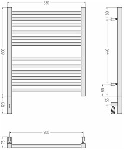 КОМФОРТНОЕ УПРАВЛЕНИЕ. Управление происходит всего одной эргономичной кнопкой – она позволяет регулировать температуру в диапазоне от 40 до 60°С, выставлять таймер отключения прибора и переводить полотенцесушитель в режим экстра сушки.
