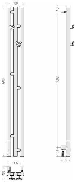 ВАЖНОСТЬ КАЖДОЙ ДЕТАЛИ. Блок управления МЭМ Сунержа®справа или слева. В стандартной комплектации – две вешалки, кабель длиной 1,5 м и модуль для скрытого подключения полотенцесушителя.