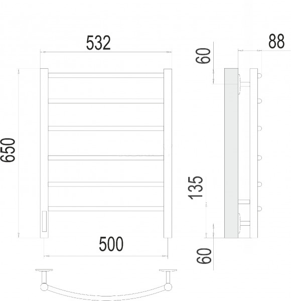 Полотенцесушитель Terminus Классик черный (quick touch) - модель в форме классической лесенки. Имеет универсальное подключение к сети - скрытое, либо с вилкой. Материал изготовления — нержавеющая сталь.