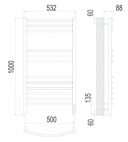Полотенцесушитель Terminus Классик черный электро quick touch. Внутри полотенцесушителя установлен сухой евротэн, который при включении питания быстро прогревает всю поверхность изделия. Подключение при помощи кабель-вилки либо к скрытой проводке. Полотенцесушитель проходит лазерную обработку швов.