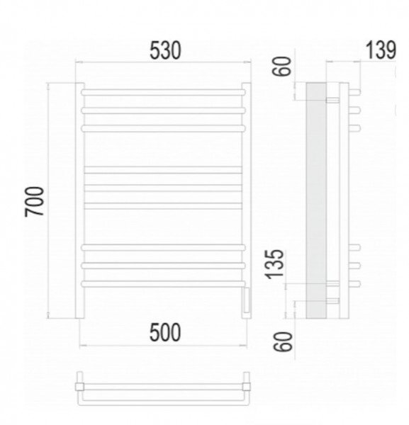 Полотенцесушитель Terminus Соренто черный электро quick touch. Внутри полотенцесушителя установлен сухой евротэн, который при включении питания быстро прогревает всю поверхность изделия. Подключение при помощи кабель-вилки либо к скрытой проводке. Полотенцесушитель проходит лазерную обработку швов.