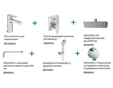 Купить набор Ideal Standard Esla BD002XC 6 в 1 вы можете в нашем интернет-магазине по низкой цене и выгодной доставкой по Минску и всей Беларуси. У нас работают грамотные специалисты, которые проконсультируют вас по выбору всей сантехники и комплектующих. В нашем магазине только сертифицированная продукция с заводской гарантией от производителя.