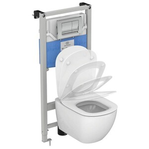 Комплект Ideal Standard Tesi 4 в 1 инсталляция + кнопка + унитаз + крышка микролифт (T387201)