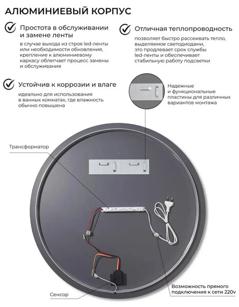 Купить зеркало круглое c подсветкой Emze Led 70 см LED.70.70.4K вы можете в нашем интернет-магазине по низкой цене и выгодной доставкой по Минску и всей Беларуси. У нас работают грамотные специалисты, которые проконсультируют вас по выбору всей сантехники и комплектующих. В нашем магазине только сертифицированная продукция с заводской гарантией от производителя.