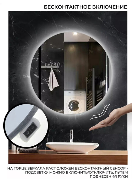 - Зеркало оснащено сенсорным включением, реагирующим на движение.