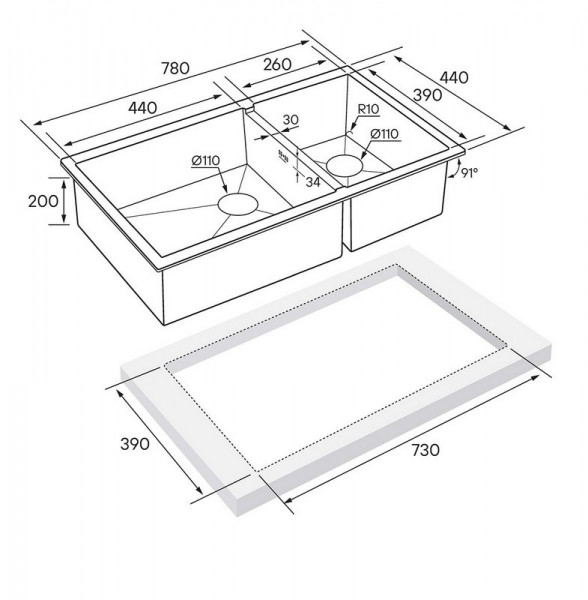 Способ установки: Врезная под столешницу / В один уровень со столешницей / Накладная на столешницу