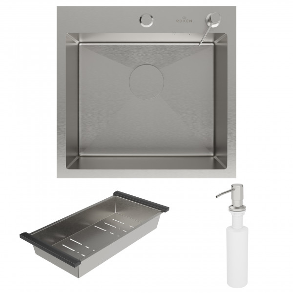 Кухонная мойка Roxen Simple 50х48 с коландером и дозатором в комплекте. Удобная модель с глубокой чашей и широким отверстием слива, сочетает в себе стильный современный дизайн и отличные эксплуатационные характеристики. Мойка изготовлена из аустенитной низкоуглеродистой стали марки AISI 304, которая обладает устойчивостью к коррозии, окислению и перепаду температур. Уникальное покрытие Bruch Tech является защитным слоем, устойчивым к истиранию, появлению царапин и механических повреждений. Отличные шумопоглощающие характеристики мойки обеспечиваются шумоподавляющим составом Silent Protection и шумопоглощающими пластинами Soft Silence, которые располагаются по всей чаше мойки.
