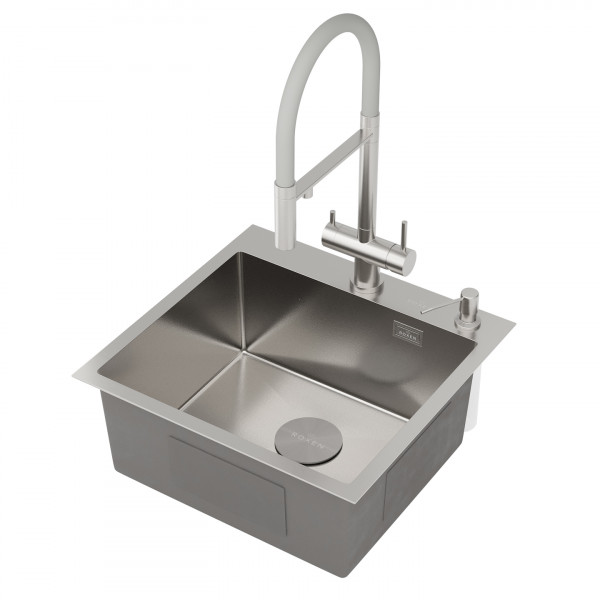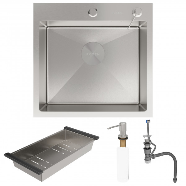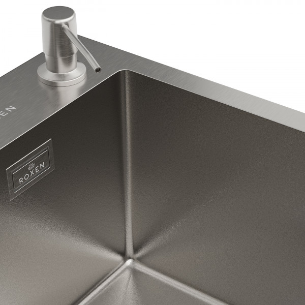 Кухонная мойка Roxen Simple 560220-50-V (сатин Volcanic) 50х48 с коландером и дозатором в комплекте. Удобная прямоугольная модель с глубокой чашей, сочетает в себе стильный современный дизайн и отличные эксплуатационные характеристики. Мойка изготовлена из аустенитной низкоуглеродистой стали марки AISI 304, которая обладает устойчивостью к коррозии, окислению и перепаду температур. Уникальное покрытие Bruch Tech является защитным слоем, устойчивым к истиранию, появлению царапин и механических повреждений. Толщина стали исключает деформацию и обеспечивает долгий срок эксплуатации. Отличные шумопоглощающие характеристики мойки обеспечиваются шумоподавляющим составом Silent Protection и шумопоглощающими пластинами Soft Silence, которые располагаются по всей чаше мойки.