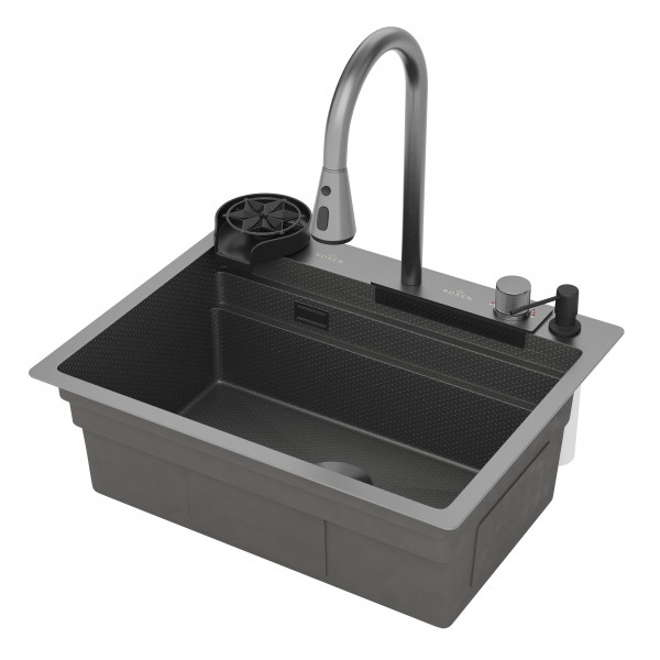 Многофункциональная кухонная мойка Roxen Stage Plus 560250-60-BS - это удобная функциональная модель с глубокой чашей в цвете "графит" с текстурной поверхностью, сочетает в себе стильный современный дизайн и отличные эксплуатационные характеристики.