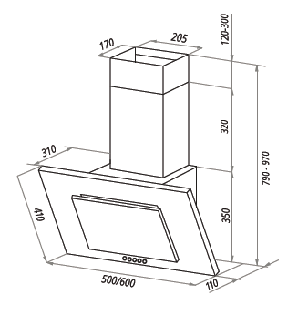 - Монтаж. Вытяжка предназначена для настенного монтажа.