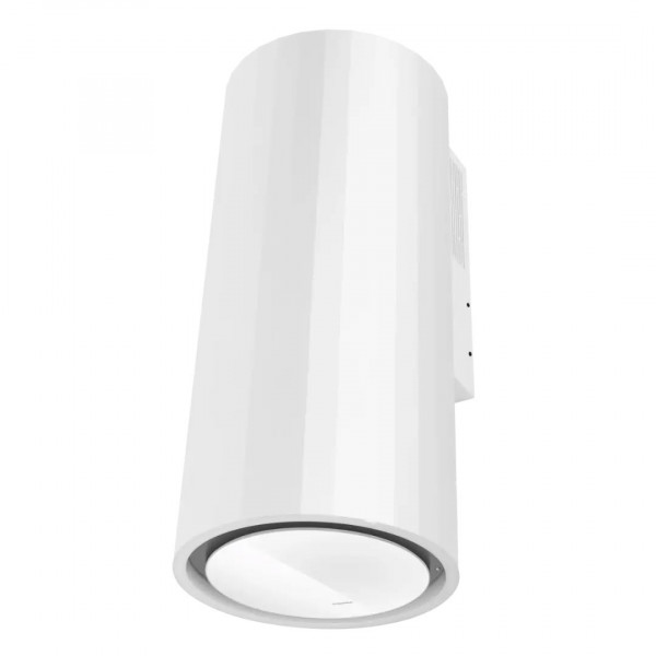 Дизайн вытяжки эффектно выделяется рельефными полосами вдоль цилиндрического корпуса и запоминающейся стеклянной панелью, выполненной в соответствии со всеми тенденциями рынка бытовой техники.