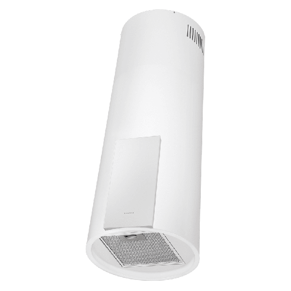 Корпус цилиндрической формы монтируется на потолок над варочной поверхностью. В нижнем торце вытяжки расположен специальный многослойный жироулавливающий фильтр, который легко вынимается и полностью разбирается для чистки.