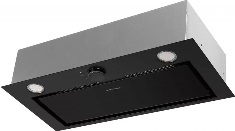 Корпус сделан из нержавеющей стали. На фасаде выятяжки черного цвета находится откидная панель, выполненная из закаленного черного стекла. За ней располагается легко снимающийся жироулавливающий алюминиевый фильтр. Вся фурнитура выполнена в черном цвете. Загрязненный воздух втягивается по периметру откидной панели.