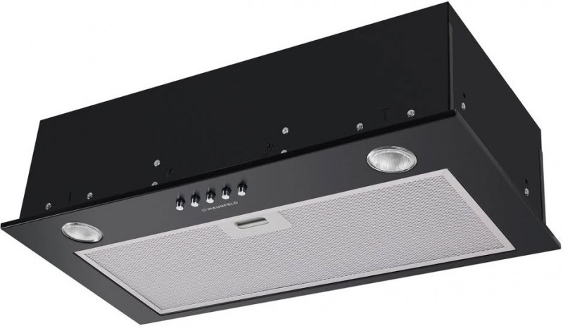Корпус выполнен из нержавеющей стали. На фронтальной панели черного цвета установлен многослойный жироулавливающий алюминиевый фильтр. Он легко вынимается из вытяжки и полностью разбирается, что значительно упрощает его очистку.