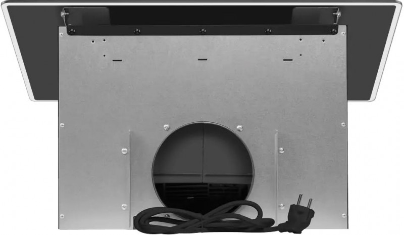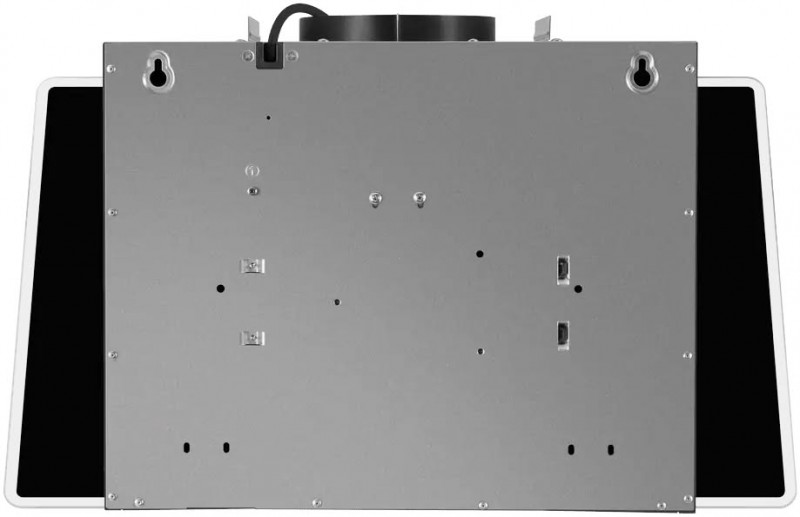Корпус сделан из эмалированной стали. Фасад выполнен полностью из закаленного глянцевого стекла с прозрачной окантовкой. За ней скрыт алюминиевый жироулавливающий фильтр, который легко снимается и полностью разбирается для чистки. Загрязненный воздух втягивается по периметру откидной панели.