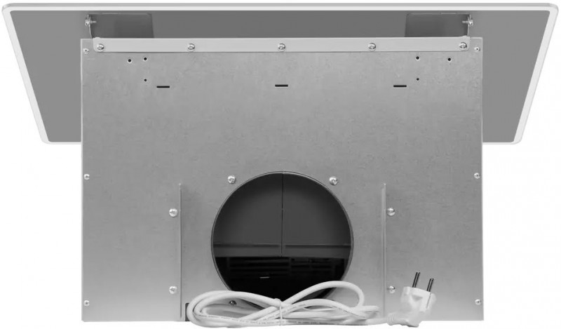 Корпус сделан из эмалированной стали. Фасад выполнен полностью из закаленного глянцевого стекла с прозрачной окантовкой. За ней скрыт алюминиевый жироулавливающий фильтр, который легко снимается и полностью разбирается для чистки. Загрязненный воздух втягивается по периметру откидной панели.