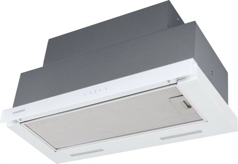 - Сверхмощная телескопическая кухонная вытяжка с шириной 60 см благодаря выдвижному козырьку может эффективно очищать загрязненный воздух на в кухне очень большой площади (до 50 кв.м). Модель встраивается в навесной шкаф над поверхностью плиты. Работает в 2-х режимах – отвода (при подключении вытяжки к системе вентиляции) и рециркуляции (при использовании сменного угольного фильтра в вытяжке).