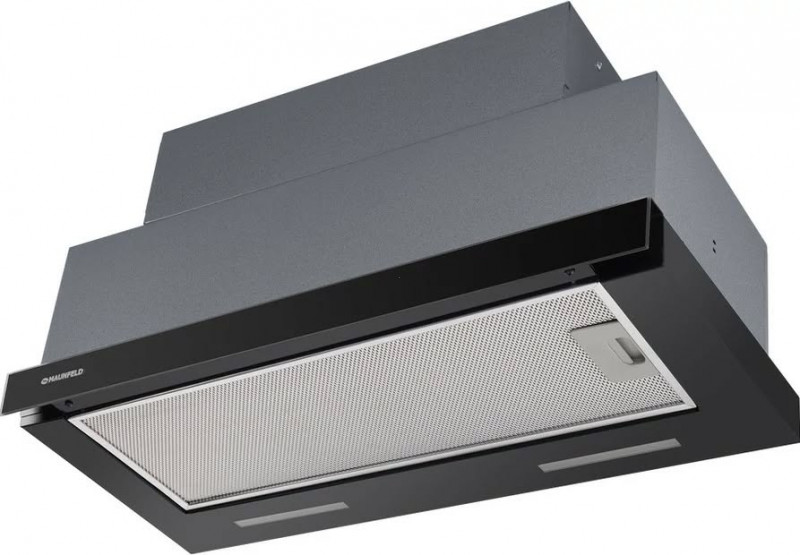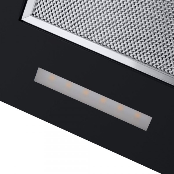 - Фасад выдвижной панели выполнен из закаленного глянцевого стекла черного цвета. Основная рабочая и выдвижная панели изготовлены из нержавеющей стали с эмалированным черным покрытием. Предусмотрено два жироулавливающих фильтра из алюминия, которые легко снимаются и полностью разбираются для чистки.