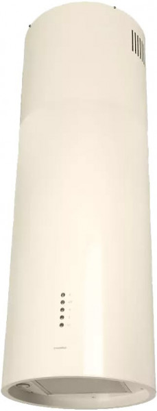 Корпус цилиндрической формы, выполненный из нержавеющей стали с термостойким покрытием бежевого цвета, крепится на потолок над поверхностью плиты. В нижней части вытяжки находится алюминиевый многослойный жироулавливающий фильтр. Он легко вынимается и полностью разбирается, что сильно упрощает чистку.