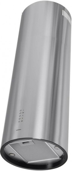 Цилиндрический корпус, изготовленный из матовой нержавеющей стали, устанавливается на потолок над кухонной плитой. В нижней части вытяжки расположен многослойный алюминиевый фильтр для улавливания жира. Этот фильтр можно легко извлечь и полностью разобрать, что значительно упрощает его очистку.