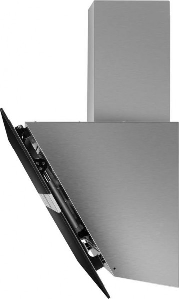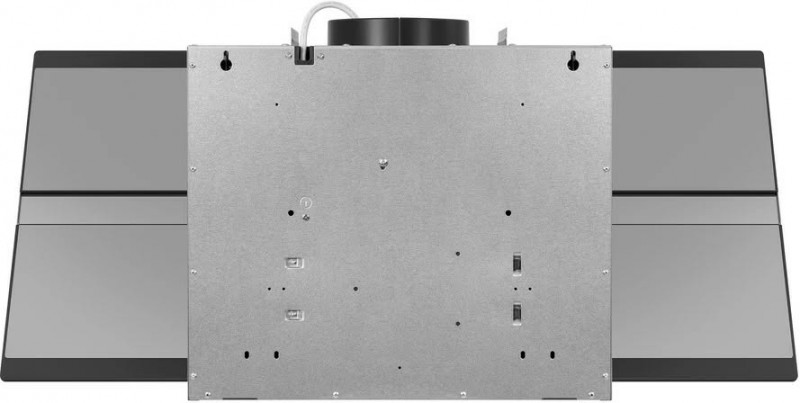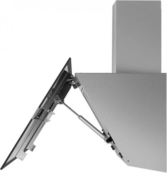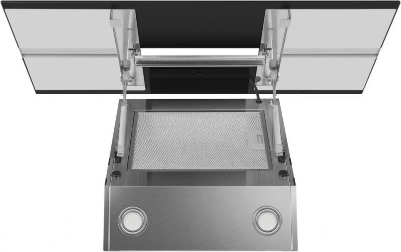 Корпус выполнен из матированной нержавеющей стали. Откидной фасад из закаленного глянцевого стекла черного цвета украшен стальными вставками. Загрязненный воздух втягивается по всему периметру панели через алюминиевый жироулавливающий фильтр, который легко снимается и полностью разбирается, что сильно упрощает его чистку. Особое внимание заслуживает система фиксации откидной панели - это газ-лифты и магнитные защелки.